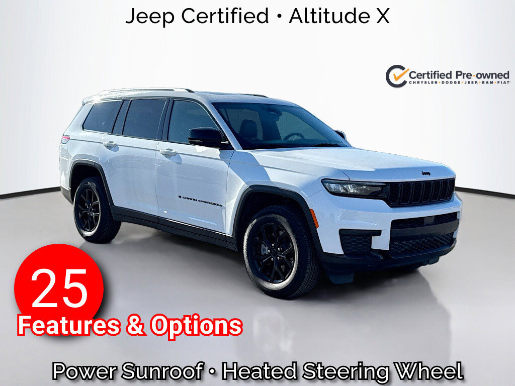 125-Point Chrysler Jeep Dodge Ram Certified Inspection, Multi-Point Inspection, w/ Oil Change, Smog Completed, & Full Vehicle Detail Insided & Out, Wiper Blades are New all around, Cabin Air Filter is New, Engine Air Filter is New, 115V Auxiliary Power Outlet, 3rd Row Charge-Only USB Ports, Altitude X, Anti-whiplash front head restraints, Black Headliner, Brake assist, Capri Leatherette/Suede Seats, Delete Laredo Badge, Electronic Stability Control, Emergency communication system, Gloss Black Exterior Accents, Heated Front Seats, Heated Steering Wheel, ParkView Rear Back-Up Camera, Power Liftgate, Power Sunroof, Quick Order Package 23M Altitude X, Rain Sensitive Windshield Wipers, Remote Start System, Selectable Tire Fill Alert, Wheels: 18" x 8.0" Fully Painted Aluminum 1, Wireless Charging Pad.